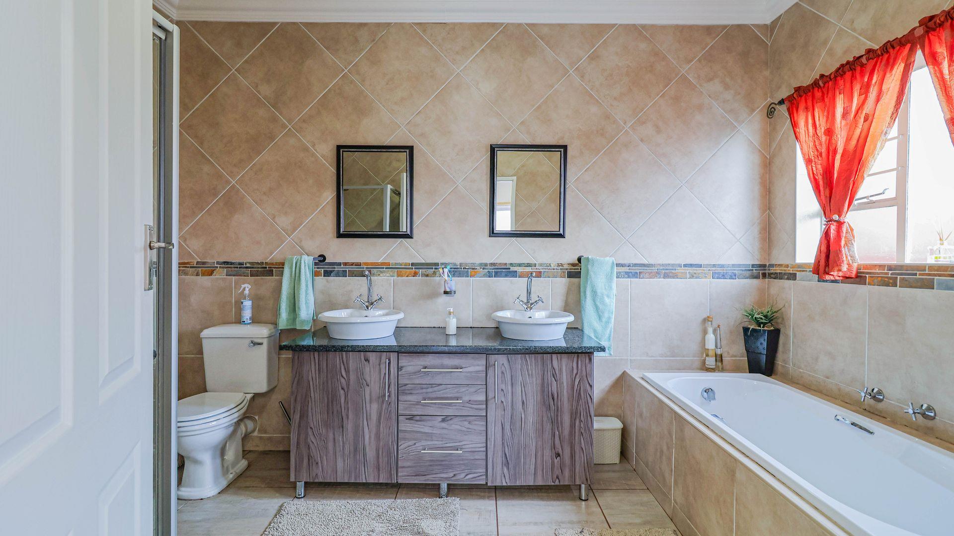 This exquisite home in the beautiful Helderkruin View suburb of Roodepoort and is available for sale to a family that requires safety and extra space in their home environment. This four-bedroomed home is situated on the ridge in Helderkruin View in an enclosed, access controlled single entrance area - secure and very safe with a minuscule levy toward the security personnel. Helderkruin is close to many of the top primary schools on the West Rand with easy access to shopping centers, services centers, clinics and hospitals. This home includes four bedrooms, three bathrooms, kitchen, scullery, two lounges, pajama lounge, dining room, family/TV room, two home-offices, large entertainment room with quest toilet, swimming pool, servants' quarters, four garages, caravan carport, two under-cover parkings and standby services like six rainwater tanks and two solar geysers. The large entertainment room is separate from the house with its own entrance, built-in gas braai, quest toilet and stacker doors onto a veranda that can easily be converted into a two bedroomed flat for additional income or for the family that needs to look after elderly parents. Ideal opportunity. The six rainwater tanks add up to eight thousand liters of standby water. The home includes two air conditioners and ceiling fans in some of the bedrooms. The home offices have wall mounted desks with the upstairs office room for two workstations.